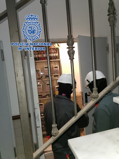 Los agentes comprobaron que todas las viviendas presentaban una acometida ilegal del suministro eléctrico, por lo que operarios de Endesa cortaron durante el registro de las viviendas.