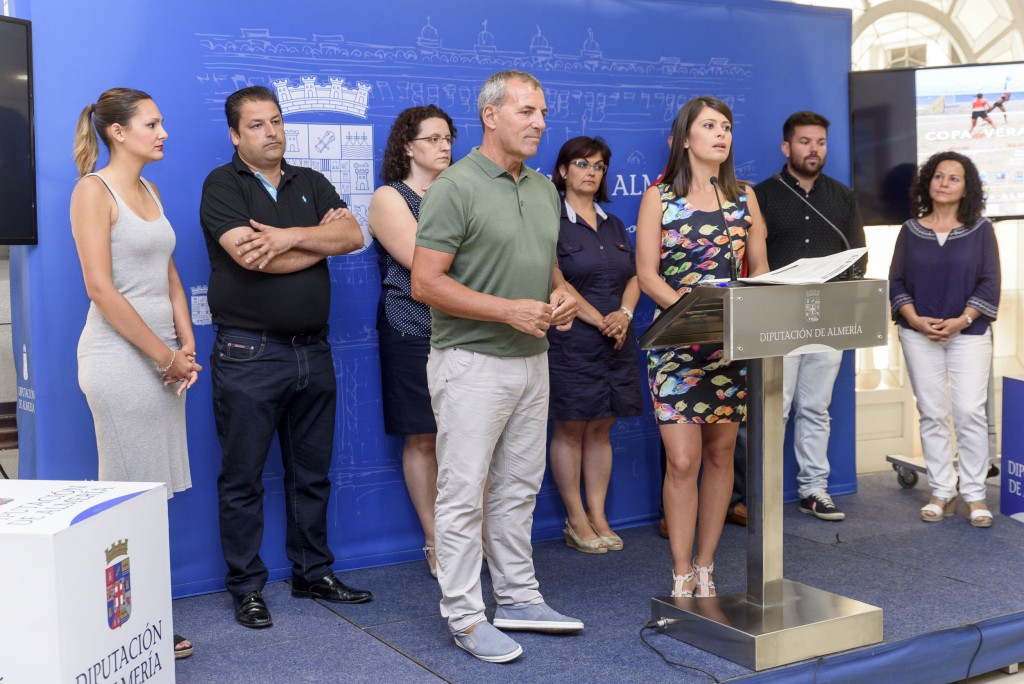 La diputada de Deportes, Ángeles Martínez acompañada del organizador del torneo, Gustavo Staniscia y los representantes de los Ayuntamientos sede de esta iniciativa (Carboneras, Vera, Mojácar, Garrucha, Balanegra, Cuevas del Almanzora y Pulpí) ha dado a conocer los detalles de este torneo que tendrá como escenario las espectaculares playas de la provincia.