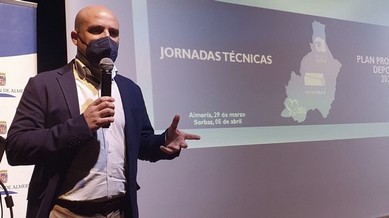 El diputado de deportes, José Antonio García, ha inaugurado la jornada que ha arrancado hoy y que continuará con la sesión del próximo 5 de abril, más específica para municipios menores de 5.000 habitantes, que se celebrará en el Espacio Sociocultural Campanario del Ayuntamiento de Sorbas.