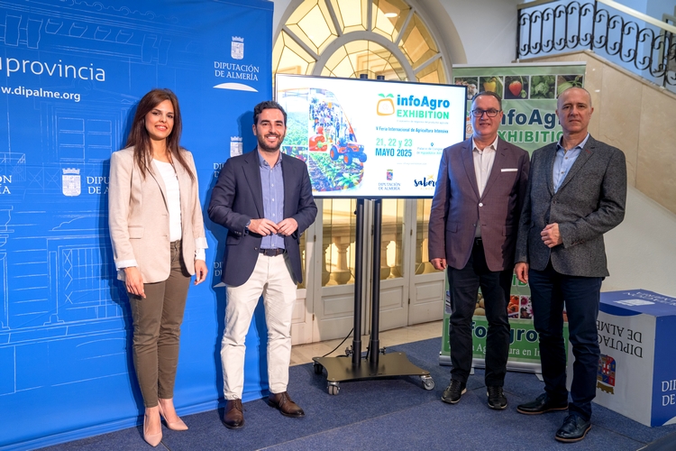 La Diputación de Almería e Infoagro han presentado esta mañana en el Palacio Provincial los detalles de la quinta edición de la Feria Internacional Infoagro Exhibition, que tendrá lugar del 21 al 23 de mayo, en el Palacio de Congresos de Aguadulce.