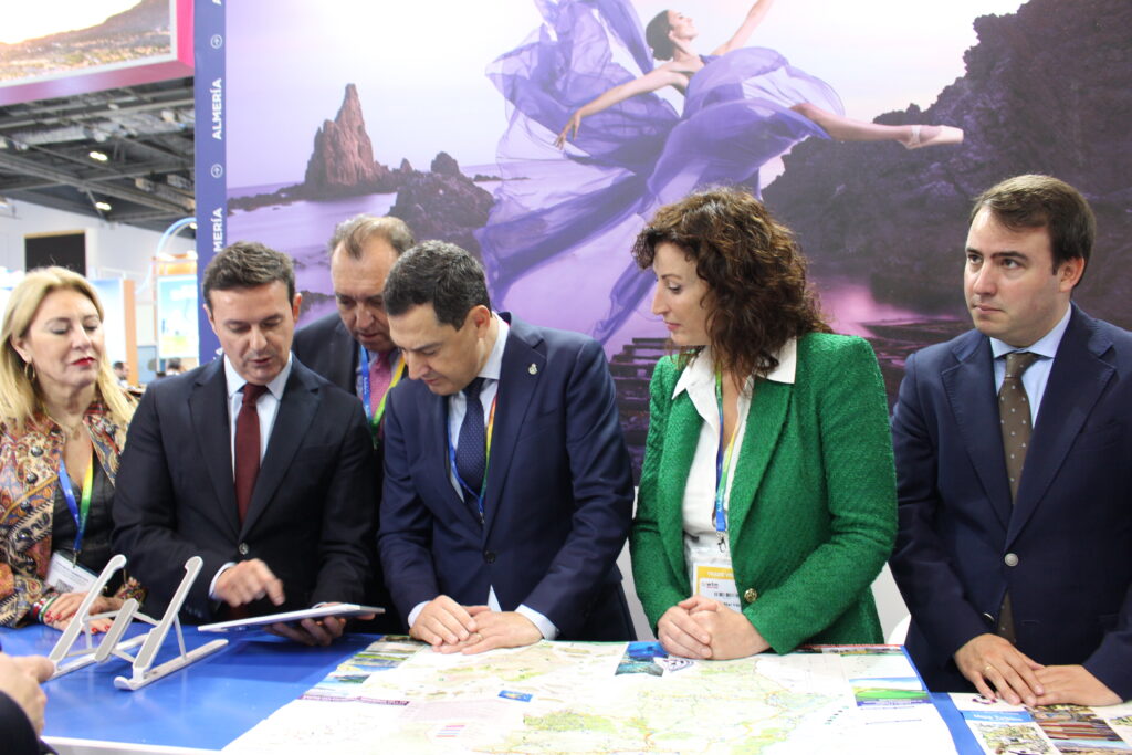 El presidente andaluz ha conocido de primera mano la oferta que el expositor almeriense muestra a profesionales y público que durante estos días visitan la WTM, una propuesta que se caracteriza por un turismo de experiencias, sostenible, que no masifica la llegada de turistas para que la vivencia del visitante resulte inmejorable. El presidente ha destacado que “Andalucía es el destino más seguro a nivel nacional e internacional”, y ha anunciado la puesta en marcha de una campaña para atraer ‘nómadas energéticos’ a la Comunidad.