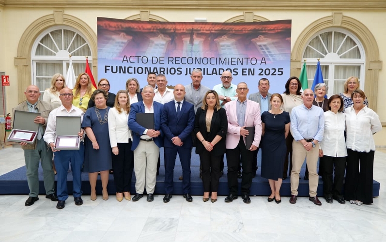 La Diputación de Almería ha celebrado esta mañana en el Patio de Luces del Palacio Provincial un acto de reconocimiento público a los cerca de 40 trabajadores de la institución que se han jubilado durante 2025. A cada uno de ellos se les ha entregado una placa conmemorativa como muestra de agradecimiento por su labor profesional dedicada a la provincia y a los almerienses.