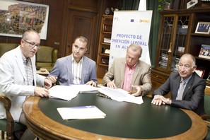 El presidente de la Diputación de Almería, Gabriel Amat ha firmado un convenio de colaboración junto al alcalde de Huércal de Almería Juan José López de las Heras, para impulsar las prácticas profesionales no laborales de los 10 desempleados beneficiarios del Plan de Inserción Laboral de Almería (PILA 2). Se trata de la acción formativa denominada ‘Instalación y Mantenimiento de Jardines en Huércal de Almería’ que pretende convertir a estas personas con dificultades para incorporarse a la vida laboral en auténticos profesionales. Ambos han estado acompañados por el diputado de Promoción Económica y Empleo, Amós García.