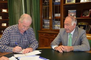 El presidente de Diputación, Gabriel Amat, ha recibido en su despacho al alcalde, Juan Herrera, para llevar a cabo la firma del convenio de colaboración entre ambas instituciones que tiene por objeto regular las condiciones de la asistencia económica para la financiación de estas obras de mejora en el abastecimiento.