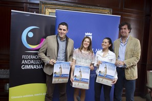 La diputada provincial de Deportes, Ángeles Martínez, el concejal de Deportes del Ayuntamiento de Almería, Juan José Alonso, y la delegada provincial de la Federación Andaluza de Gimnasia Rítmica, Raquel Archilla, han presentado el Campeonato de Andalucía Individual, Base Individual y Conjuntos Base que se celebrará en el Pabellón Moisés Ruiz los días 8, 9 y 10 de mayo y que servirá como conmemoración de los Juegos Mediterráneos Almería 2005.