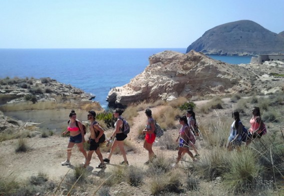 La jornada comenzó a las 10 horas, con la recepción a los participantes en la playa de Las Negras, lugar donde se crearon dos subgrupos, de los cuales uno se marchó hasta el Playazo de Rodalquilar para hacer kayak y el otro a realizar trekking. Posteriormente se intercambiaron, conformando una programación variada y muy divertida. En la ruta de kayak recorrieron una franja litoral del parque de una gran belleza natural, entrando en la Cueva de Las Palomas y recovecos de la costa y teniendo la opción de tener una vista espectacular del Parque desde el agua.