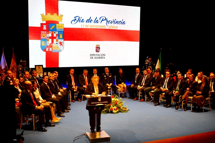 Después ha ensalzado los logros y merecimientos que han llevado a la Institución Provincial a distinguir a las personas y entidades que han recibido las Medallas de la Provincia de 2024. De Tasy Dmitryv ha destacado su tesón y genialidad al llegar a lo más alto de su deporte con solo 16 años; de la Policía Nacional su papel como garante de los derechos y libertades de todos los españoles; del Ayuntamiento de Antas su apuesta por la historia y patrimonio como valor cultural y turístico al difundir El Argar, y de Coexphal la contundente defensa que lleva a cabo desde su creación del agro almeriense.