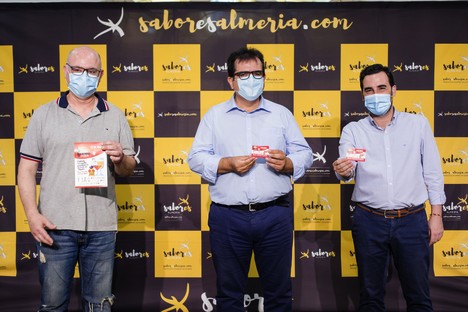 presentación del Día Mundial de la Tapa que ASHAL. diputado de Promoción Agroalimentaria, Antonio Jesús Rodríguez, concejal de Promoción de la Ciudad del Ayuntamiento de Almería Carlos Sánchez, presidente de ASHAL Diego García.