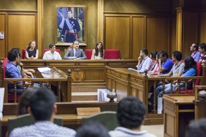 Durante su visita a la capital, los estudiantes han sido recibidos en el salón de plenos de la Diputación de Almería por el diputado de Promoción Económica, Amos García, que quiso agradecer la elección de Almería como destino de este proyecto internacional. Aspecto este que demuestra la importancia de nuestra provincia en el sector de las energías alternativas.