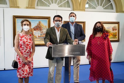 El patio de Luces de la Diputación de Almería acoge desde este jueves noche una exposición que hace un recorrido por la trayectoria pictórica del indalino Miguel Cantón Checa. La exposición ha sido inaugurada por el diputado de Cultura y Cine, Manuel Guzmán, acompañado de Francisco Alonso, director del Instituto de Estudios Almerienses y Maribel y María del Mar Cantón, hijas del pintor.