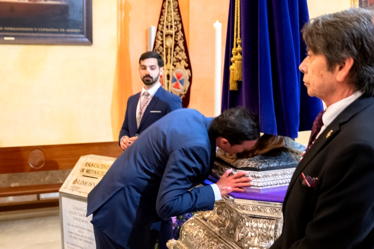 El presidente de Diputación, Javier A. García, acompañado por los diputados del equipo de Gobierno, ha participado esta mañana, a las 9.00 horas, en una de las tradiciones religiosas más arraigadas de la provincia de Almería: el Besapiés de Jesús Cautivo de Medinaceli.