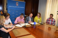 La firma del convenio ha contado además con la presencia de la diputada de Bienestar Social, Almudena Valentín, el responsable de Recursos Humanos de COEXPHAL, José López-Ortega y la directora del Servicio Provincial de Drogodependencias y Adicciones, María Elena Bernal.