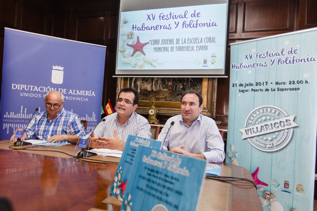 Diputación Provincial de Almería ha presentado el XV Festival de Habaneras y Polifonía. Un evento que tendrá lugar el próximo viernes, 21 de julio, a las 22.00 horas en el Puerto de la Esperanza (Villaricos) y en el que participarán grupos internacionales como el Voca Erudita Students Choir of Sebelas Maret University (Indonesia), Youth Choir Kamer de Riga (Letonia) y el Coro Juvenil de la Escuela Coral Municipal de Torrevieja (España).