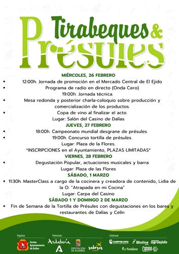 - Ruta gastronómica: Un recorrido por los bares y restaurantes de Dalías, donde se podrán degustar tapas y platos elaborados con tirabeques y présules.