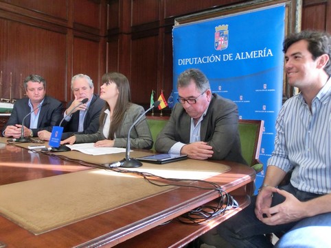 La Diputación Provincial de Almería y el Unicaja Almería han organizado, de forma conjunta, un partido de voleibol benéfico a favor de las víctimas del temporal de lluvias que azotó el Levante Almeriense el pasado 28 de septiembre. La Sala de Comisiones del Palacio Provincial ha acogido, esta mañana, la presentación de este choque que se celebrará el día 20 a cargo de la diputada de Deportes, Ángeles Martínez; el director del Área, Juan José Salvador; el Alcalde de Vera, José Carmelo Jorge Blanco; Juan de la Cruz, edil de Deportes del Ayuntamiento de Vera y el presidente del Club Unicaja, Ramón Sedeño.