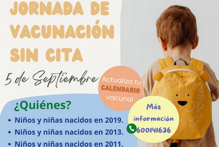 El Distrito Sanitario Almería ha organizado para el próximo viernes 5 de septiembre una jornada especial de vacunación sin necesidad de cita previa dirigida a la población infantil y juvenil de distintos grupos de edad. El objetivo principal de esta iniciativa es seguir avanzando en la inmunización de la población, mejorar las coberturas vacunales y facilitar la actualización del calendario de vacunación antes del inminente comienzo del curso escolar, de manera que ningún niño, niña o adolescente quede desprotegido frente a enfermedades prevenibles gracias a las vacunas.