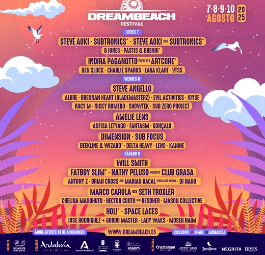 El cartel de artistas de la 11ª edición presentará muchas sorpresas de talla internacional, apostando tanto por grandes nombres del circuito electrónico que han pasado por Dreambeach a lo largo de esta década, así como nuevos referentes o artistas urbanos, y también dará un espacio de relevancia a la escena nacional y local. Dreambeach está cofinanciado con fondos europeos FEDER. Junta de Andalucía. Con el patrocinio del INAEM, la Conserjería de Turismo, Cultura y Deporte de la Junta de Andalucía, la Diputación Provincial de Almería y el Ayuntamiento de Almería.