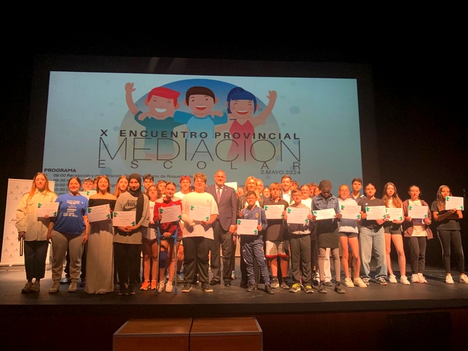 El Encuentro, que coincide con el Día Mundial contra el Acoso Escolar, ha cursado este jueves en el Teatro Auditorio de Roquetas de Mar y ha contado con la implicación de más de 200 estudiantes – mediadores de 36 centros educativos de la provincia de Almería que han tenido la oportunidad de reflexionar sobre la importancia de la resolución pacífica de conflictos entre iguales como forma preventiva del acoso escolar y como medio para el impulso de la cultura de la Paz en el contexto de los centros educativos de la provincia de Almería.