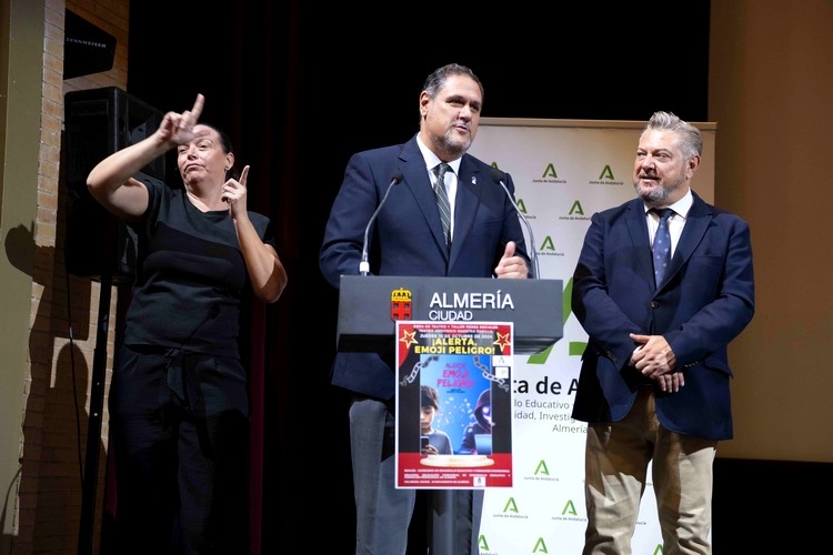“¡Alerta, Peligro Emoji!” es una actividad lúdico-didáctica promovida por la Consejería de Desarrollo Educativo y FP de la Junta de Andalucía como una medida de prevención sobre los peligros en el uso de las redes sociales entre los adolescentes andaluces. Está dirigida al alumnado de 3º y 4º de Enseñanza Secundaria Obligatoria y ha iniciado su andadura por nuestra Comunidad Autónoma en Almería con la asistencia de estudiantes del IES Maestro Padilla, IES Nicolás Salmerón, IES Azcona, IES Alborán, CDP Ciudad de Almería, IES Bahía de Almería, IES Al- Andaluz, IES Alhadra, IES Alhamilla, CDP Cuidad de Almería y CDP Compañía de María de Almería.