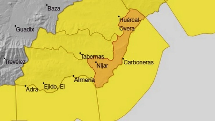 En la provincia de Almería, la Aemet activa de cara a la jornada del jueves el aviso naranja por vientos en las comarcas de Poniente y Capital.