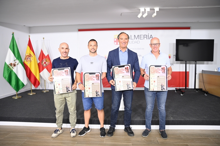 La sala de prensa del Ayuntamiento de Almería ha acogido hoy la presentación de la competición, con la asistencia del concejal Antonio Casimiro, el triatleta Jairo Ruiz, el delegado provincial de la Federación Andaluza de Tritalón, Paco Fuentes, y el director de Al-Sport, organizadora de la actividad.