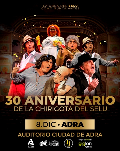 El Auditorio Ciudad de Adra acoge el próximo 8 de diciembre, a partir de las 18:00 horas, una nueva cita con el Carnaval de Cádiz. El 30 aniversario de la Chirigota del Selu se celebrará en la ciudad milenaria con todos los abderitanos, abderitanas y visitantes que quieran acudir a este evento desde tan solo 12 euros. Las entradas están ya disponibles en taquilla del Auditorio y en la web de www.giglon.com.