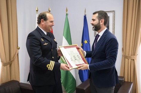 Previamente al recorrido que el alcalde, junto a miembros del Equipo de Gobierno y la Corporación Municipal, ha realizado al buque, Fernández-Pacheco recibía en las dependencias de Alcaldía, en el Preventorio, al Comandante de la fragata, en su caso acompañado del Comandante de Marina en Almería, Víctor Garay. En este acto ha hecho entrega, al mando de fragata, de una lámina de la fachada del Ayuntamiento, una reproducción del dibujo que el arquitecto municipal Trinidad Cuartara Cassinello realizara en el siglo XIX de la fachada principal de la Casa Consistorial, ubicada en la Plaza Vieja.