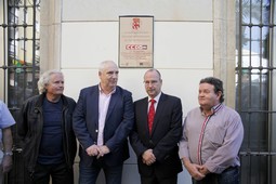 El alcalde de Almería, Luis Rogelio Rodríguez-Comendador, ha sido el encargado este jueves de descubrir una placa en homenaje al 40 aniversario del nacimiento en Almería del movimiento sindical de Comisiones Obreras, que en 1974 inició su andadura en un edificio de la Plaza Bendicho, en pleno Centro Histórico de Almería, donde tuvo su primera sede.