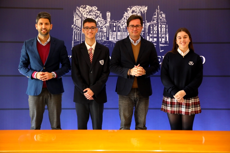 El alcalde, Francisco Góngora, y el concejal de Educación, Javier Rodríguez, han recibido a alumnos del colegio Sek-Alborán, junto a sus familiares, que han recibido el Premio Extraordinario de Educación Secundaria Obligatoria del curso 2023/24.