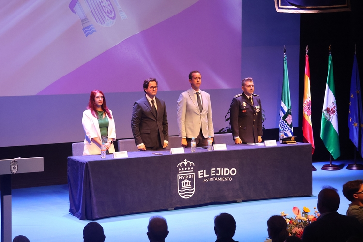El alcalde, Francisco Góngora, ha presidido el acto junto al Intendente Jefe de la Policía Local, Marco Muñoz; acompañados por el subdelegado del Gobierno, José María Martín; y la Jueza titular de la plaza nº 4 del Tribunal de Instancia de El Ejido, Marina Jiménez