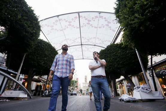 El alcalde de Almería, Ramón Fernández-Pacheco, ha supervisado este domingo por la tarde en primera persona la instalación de la nueva estructura que sustentará el entoldado del Paseo de Almería.