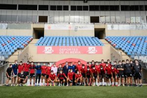 Frente a la puerta por la que salen al terreno de juego los jugadores y que el pasado viernes ya se realizó con público en las gradas, el alcalde ha saludado al entrenador, Rubí, y ha expresado a la primera plantilla que “en nombre de la ciudad, nos gusta acudir a principios de temporada para visitaros. Son muchas las expectativas de la ciudad puestas en vosotros y en el club. Almería espera mucho de vosotros y estoy seguro que vais a estar a la altura. Le he dicho al entrenador que la competición ha empezado muy bien, con dos victorias y estoy seguro que lo que no va a faltar a lo largo de la temporada es el cariño de la gente. Así que por toda Almería, os deseo lo mejor. Que sea un año de alegrías, pues vuestro éxito será el de toda la ciudad”.