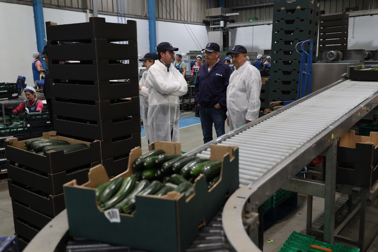 El alcalde, Francisco Góngora, y el concejal de Agricultura y Medio Ambiente, Manuel Martínez, han visitado esta mañana las instalaciones de Hortofrutícola Las Norias, empresa que es el mayor productor, procesador y exportador de calabacín de Europa.
