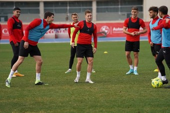 Makaritze completa parte del trabajo con sus compañeros. Los rojiblancos cierran el año con un ‘partidazo’ ante el Espany.