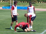 Los rojiblancos, que no le están dando tregua a sus rivales durante las últimas semanas, tampoco se dan tregua a sí mismos. El entrenamiento fue intenso, agresivo y además se pudieron ver jugadas realmente brillante como un golazo que marcó Corona, que fue aplaudido por sus propios compañeros. Al igual que el día anterior, estuvieron seis jugadores del filial, caso de Pirmin Strasser, Michel, Raúl García, Joselu, Alberto y Chumbi, además de Jonathan, que lleva toda la temporada con la primera plantilla. Por cierto que el burkinés, que reapareció la pasada jornada de Liga tras algo más de dos meses y medio de baja por una lesión muscular, está cada vez más fuerte y competitivo, dentro del alto nivel que tiene todos los integrantes del equipo.