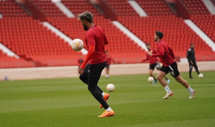 Los rojiblancos han entrenado en el Estadio de los Juegos Mediterráneos, como también ocurrirá este sábado.