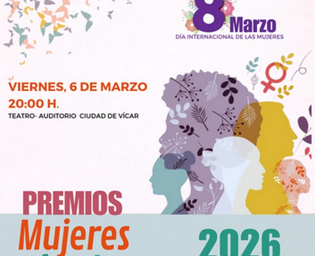 Los Premios Mujeres Referentes 2026 homenajearán a algunas de las vecinas más destacadas de Vícar el viernes 6 de marzo en el Teatro Auditorio. Además, la Escuela Ana Alonso ofrecerá una actuación de cuadro flamenco amenizando la velada, que este año tiene un fin solidario a favor de la Asociación de Familias Acogedoras de Almería- EFPD. La retirada de entradas (2€ en beneficio de dicha asociación) podrá realizarse desde el próximo lunes 23 de febrero en el Centro de la Mujer (Plaza Cervantes, Las Cabañuelas).