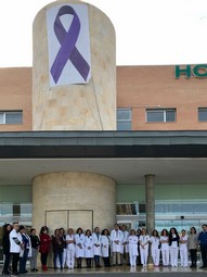 Durante toda esta semana la fachada del hospital la Inmaculada, cuelga un lazo gigante de color morado en señal de respeto por las mujeres que sufren maltrato y de repulsa hacia las agresiones y asesinatos que han sufrido.