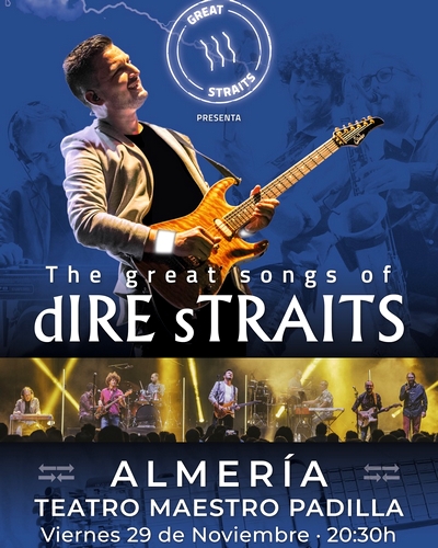 Encabezada por el guitarrista y vocalista Óscar Rosende, Brothers In Band fue reconocida internacionalmente como la mejor banda homenaje a Dire Straits. Ahora, tras más de 300 conciertos por Alemania, Luxemburgo, Francia, Portugal y España, Rosende presenta Great Straits, la nueva formación con la que sigue rindiendo un respetuoso homenaje al legado musical del grupo de Mark Knopler como hará gala de ello en el Auditorio Municipal Maestro Padilla el próximo 29 de noviembre, viernes, a las 20.30 horas, con producción de Kuver, en el marco de la programación trimestral de otoño puesta en marcha por el Área de Cultura, Tradiciones y Fiestas Mayores del Ayuntamiento de Almería.
