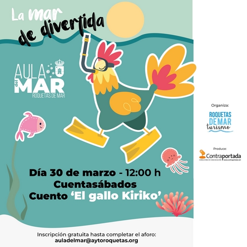 La segunda será el sábado, 30 de marzo, a las 12 horas, y consistirá en un nuevo ‘cuentasábados’, donde las familias podrán conocer la historia del ‘Gallo Kiriko’, en un cuentacuentos con títeres y música en el Aula del Mar.