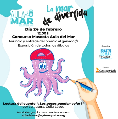 El Aula del Mar de Roquetas de Mar dará a conocer al ganador del concurso de dibujo sobre su mascota, convocado entre los estudiantes de Primaria y Secundaria del municipio, mañana, sábado, 24 de febrero, a las 12 horas, en la nueva actividad del programa de dinamización ‘La mar de divertida’, creado por Contraportada y Asiento Vip para el Área de Turismo y Playas del Ayuntamiento de Roquetas de Mar.