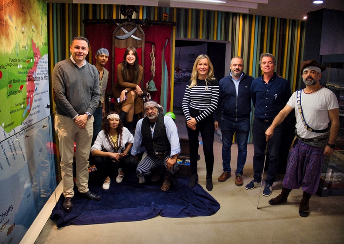 La concejal de Turismo y Playas, Amalia López Yélamos, acompañada del concejal de Cultura, Daniel Salcedo, y la concejal de Educación, Lourdes García, ha presentado esta exposición que se organiza en torno a dos ambientes principales: uno dedicado a los yacimientos históricos de Turaniana y el Imperio Romano, y otro que recrea el fascinante mundo de los piratas.