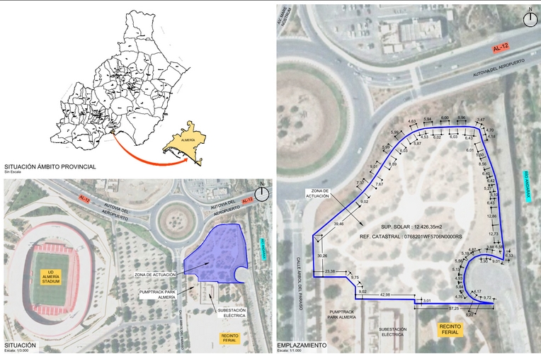 La nueva instalación se ubicará junto a la actual pista de ‘pumptrack’, ocupando una superficie de, aproximadamente 6.000 metros cuadrados, integrándose en el entorno existente, en la parte norte del Recinto Ferial.