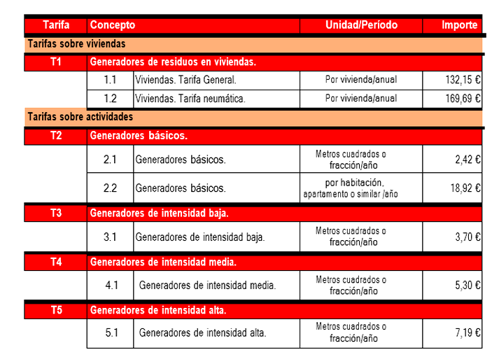 Como se recoge en la Ordenanza, de acuerdo con el escenario “elemental” establecido por el Ministerio de Hacienda y adoptado por el Ayuntamiento como régimen transitorio, se define una tarifa única para las viviendas, distinguiendo el método de recogida adoptado, entre el tradicional y la recogida neumática. Por otro lado, en cuanto a los inmuebles donde se realicen cualquier tipo actividades, se distinguen cuatro modelos de cuota, establecidos en función tanto del grado de generación de residuos como por la naturaleza de los mismos.