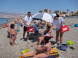 El Ayuntamiento de Almería comienza el reparto de 32.000 cono-ceniceros, portadocumentos y neveras en la playa