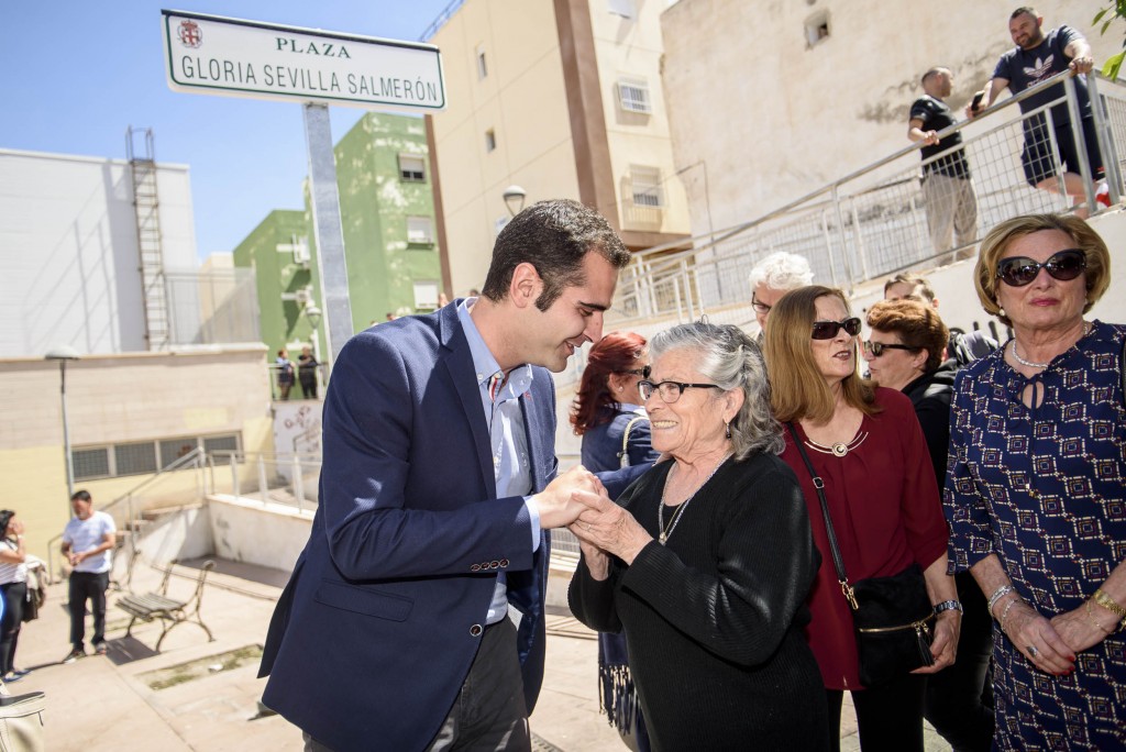 Acompañado por la concejala de Cultura, Educación y Tradiciones, Ana Martínez-Labella, el alcalde ha dejado constancia del cariño que Pescadería y Almería entera tenían hacia esta mujer. Las tres hijas de Gloria Sevilla Salmerón, otros familiares y vecinos se han congregado en la plaza para recordar la figura de quien ha sido “madrina de medio barrio” y era conocida popularmente como ‘La partera de Pescadería’.