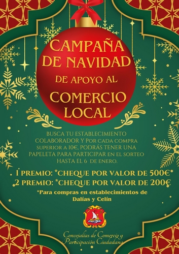 Con esta iniciativa, el Ayuntamiento de Dalías reafirma su apuesta por el comercio de proximidad y por acciones que contribuyan a mantener vivo el tejido económico del municipio, invitando a vecinos y visitantes a disfrutar de una Navidad solidaria, cercana y comprometida con lo local.