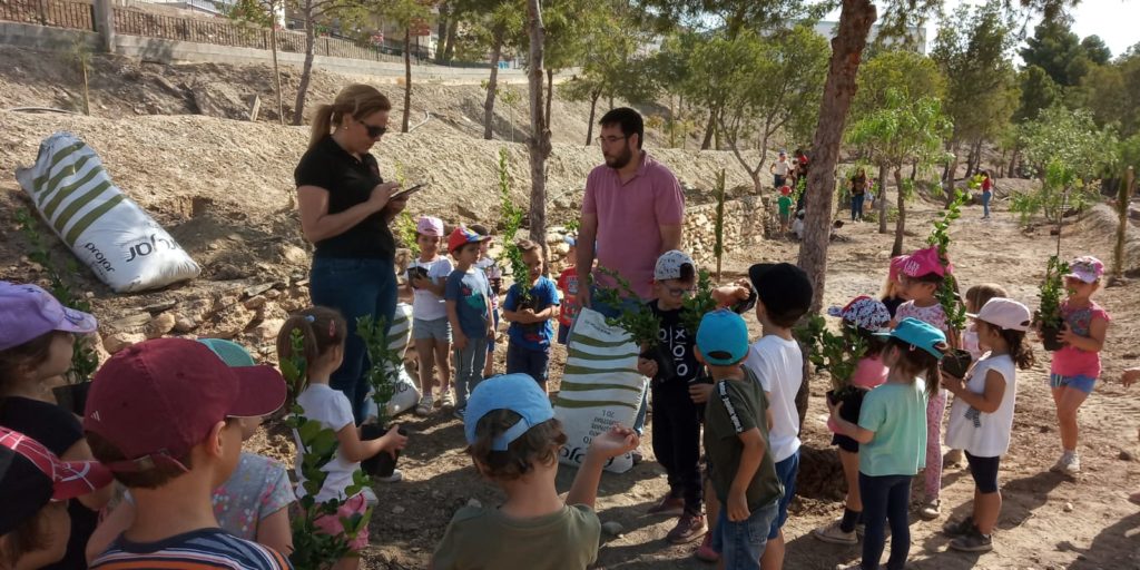 El Ayuntamiento de Tabernas y el CEIP Virgen de las Angustias llevan a cabo un taller de reforestación