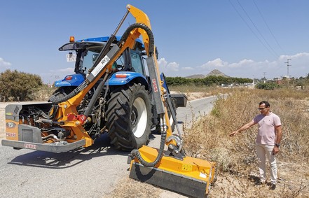 El Ayuntamiento de Vera ha adquirido una desbrozadora-trituradora por valor de 18.000€, que se ha instalado en el tractor de la brigada de obras para la realización de trabajos de limpieza y el mantenimiento de parques, jardines y parcelas municipales, así como el acondicionamiento de las cunetas de los caminos rurales y vecinales del término municipal. Se trata de una máquina con brazo articulado de 5 metros de alcance, y con un cabezal con martillos, que permitirá la limpieza y eliminación de residuos vegetales e incorporación al proceso de compostaje.