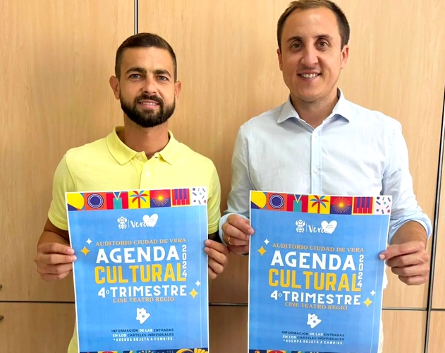 El alcalde de Vera, Alfonso García Ramos, junto al el concejal de Cultura, Antonio Jesús Soler Castaño, han presentado la programación de actividades para el cuarto trimestre del año y han reafirmado su compromiso de ofrecer una programación de calidad y accesible para todos los ciudadanos.